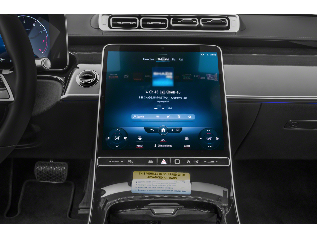 - Radio: MBUX w/Navigation -inc: 12.8" OLED touch screen, augmented video for navigation, wireless front charging, wireless smartphone integration (Apple CarPlay, Android Auto), 8 USB-C inputs, 115V power supply and online music streaming