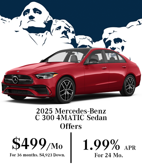 Available only to qualified customers through Mercedes-Benz Financial Services at participating dealers through March 2, 2026. Not everyone will qualify. Advertised 36 months lease payment based on MSRP of $50,450. Dealer sets the final price and Dealer’s contribution may vary and could affect your actual lease payment. Includes Destination Charge. Excludes title, taxes, registration, license fees, insurance, dealer prep and additional options. Total monthly payments equal $17,964. Amount due at signing includes $3,629 capitalized cost reduction, $795 acquisition fee and first month’s lease payment of $499. Your acquisition fee may vary by dealership. The acquisition fee charged by the dealer may affect the total amount due at signing. No security deposit required. Total payments equal $21,388. At lease end, lessee pays for any amounts due under the lease, any official fees and taxes related to the scheduled termination, excess wear and use plus $0.25/mile over 30,000 miles, and vehicle turn-in fee. Subject to credit approval. Specific vehicles are subject to availability and may have to be ordered. See participating dealer for details. Not valid in Puerto Rico. Please always wear your seat belt, drive safely and obey speed limits. 1.99% APR financing for 24 months at $42.54 per month, per $1,000 financed. Excludes leases and balloon contracts. Available only at participating authorized Mercedes-Benz dealers through Mercedes-Benz Financial Services. Must take delivery of vehicle by March 2, 2026. Specific vehicles are subject to availability and may have to be ordered. Subject to credit approval by lender. Rate applies only to Mercedes-Benz 2025 model vehicles listed. Not everyone will qualify. See your authorized Mercedes-Benz dealer for complete details on this and other finance offers.