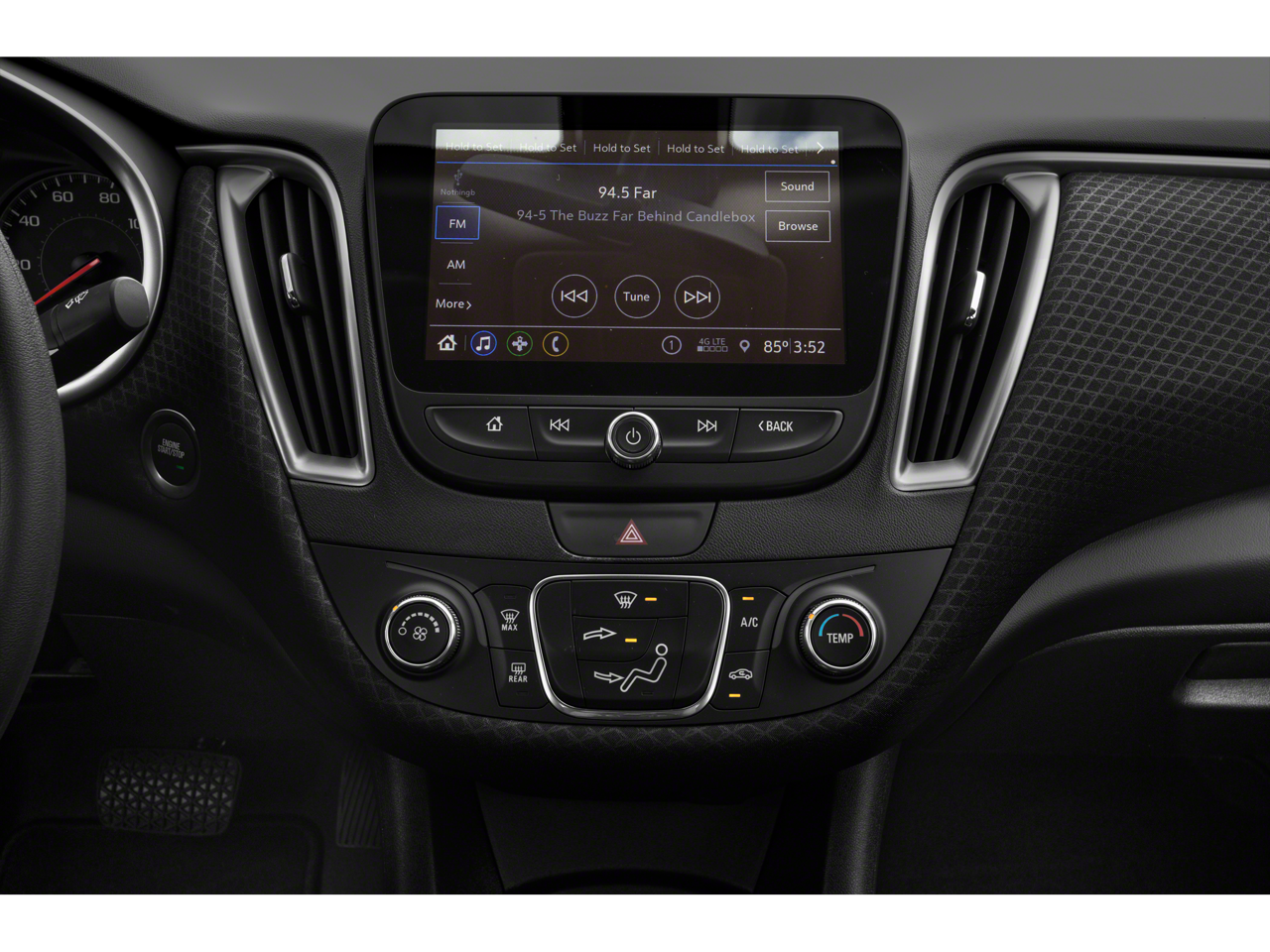 - Audio system, Chevrolet Infotainment 3 system, 8" diagonal color touchscreen, AM/FM stereo. Additional features for compatible phones include: Bluetooth® audio streaming for 2 active devices, voice command pass-through to phone, Apple CarPlay and Android Auto capable.