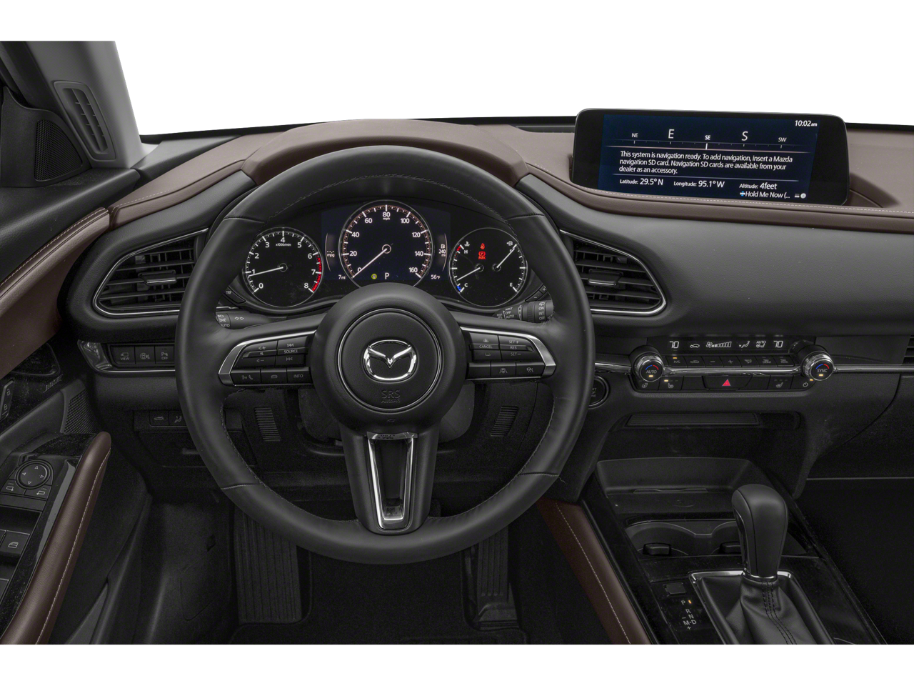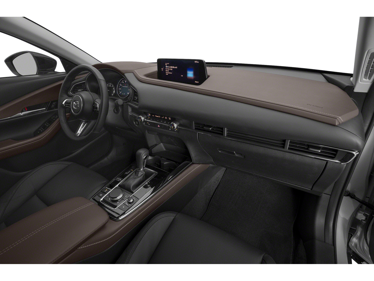 Leather Seats, Navigation, Sunroof, All Wheel Drive, Power Liftgate, Heated Driver Seat, Back-Up Camera, Turbocharged, Premium Sound System, Satellite Radio, iPod/MP3 Input, Onboard Communications System, Aluminum Wheels, Keyless Start, Dual Zone A/C Rear Spoiler, MP3 Player, Keyless Entry, Privacy Glass, Remote Trunk Release. Mazda CX-30 2.5 Turbo Premium Plus Package with Machine Gray Metallic exterior and Black w/Brown interior features a 4 Cylinder Engine with 227 HP at 5000 RPM*.