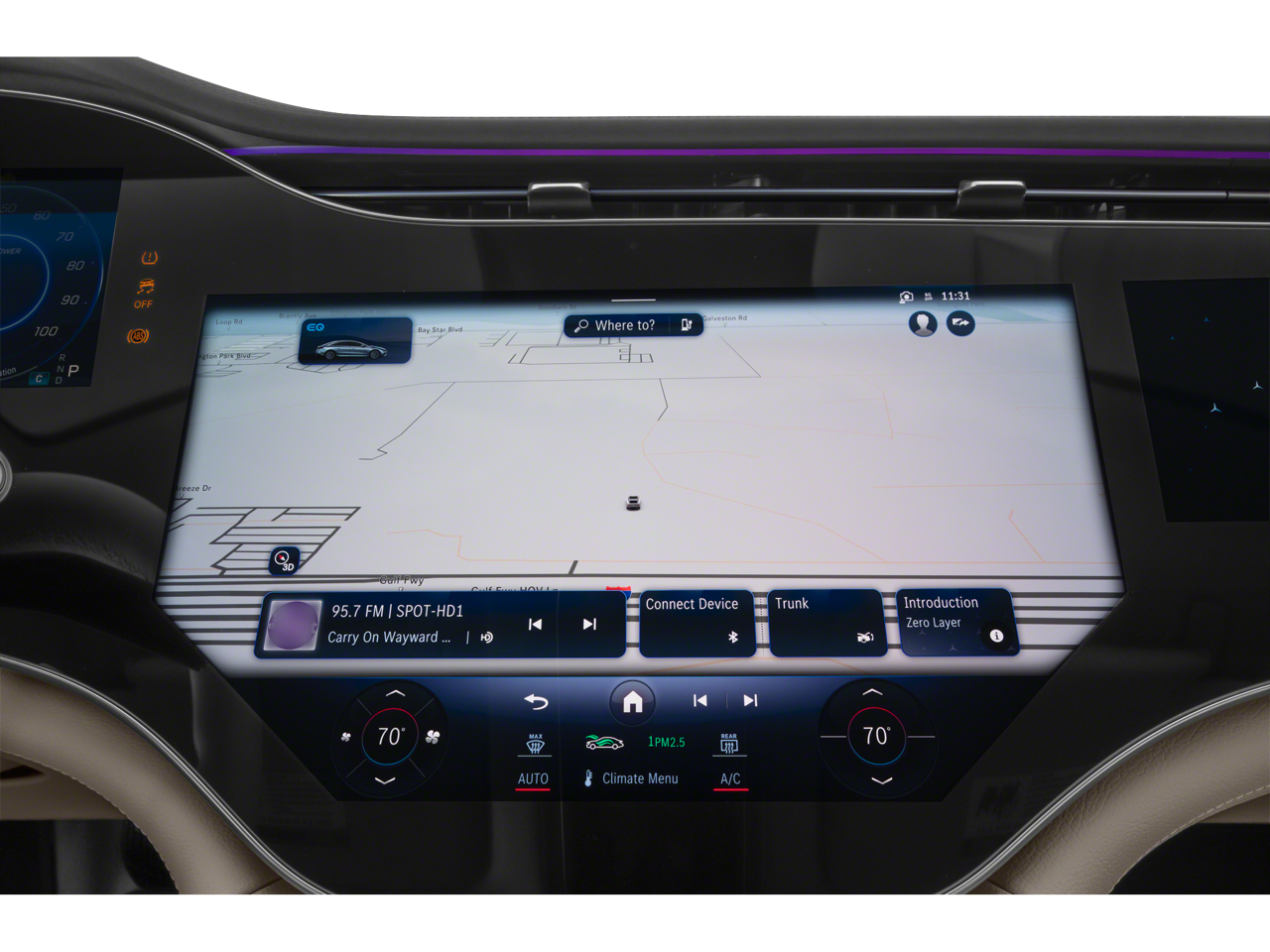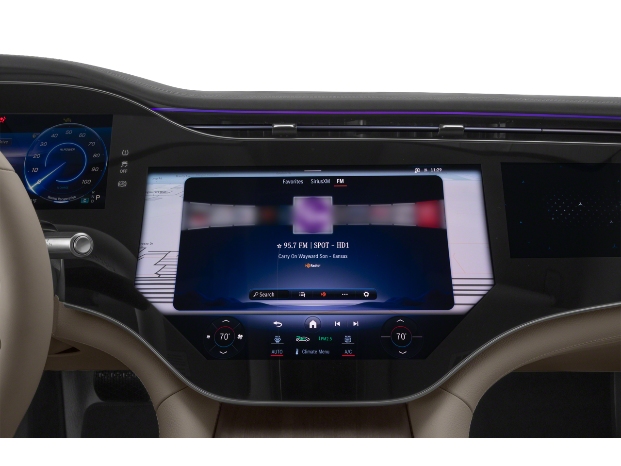 - Radio: Burmester 710W Sound System w/Dolby Atmos -inc: 15 speakers, 3D sound, EQ sound experience and sound personalization, MBUX hyperscreen, SiriusXM satellite radio w/trial period, MBUX profile authentication via fingerprint scanner and facial recognition, MBUX augmented reality for navigation and wireless smartphone integration (Apple CarPlay and Android Auto)
